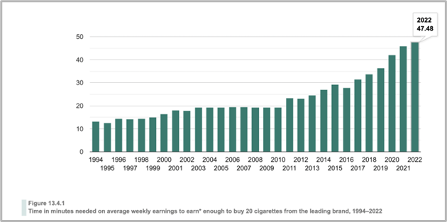 Changes in affordability of cigarettes over time in Australia
